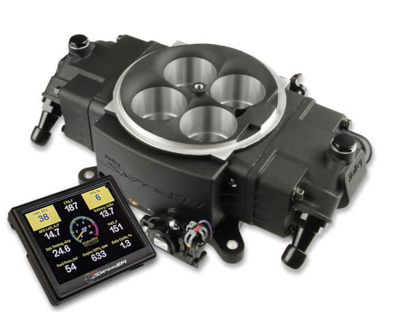 he Sniper Stealth 4150 EFI system from Holley features 4, 100LB/HR Fuel Injectors capable of supporting up to 650 HP naturally aspirated or 600 HP on forced induction applications. The Sniper Stealth 4150 ECU is capable of fuel map self-learning and ignition timing control, improving idle stability, drivability, and wide-open throttle horsepower! Did we mention that the Stealth 4150 also includes transmission kick down provisions for GM TH350/400, 200R4/700R4 and Ford C4/C6 applications. For a complete installation, Master Kits include a complete fuel system with an external fuel pressure regulator preset to 58.5psi, 20ft of 3/8" Vapor Guard Fuel Hose, Fuel Pump, Filters, necessary hardware, and bulkhead fitting to return fuel into the tank!