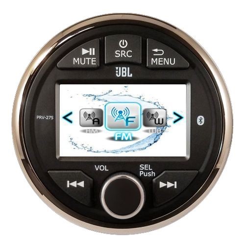 The PRV-275 features three pairs of rear-mounted preamp outputs, so you can expand your system with more speakers and marine amps whenever you're ready. The color display, UV-stable face, and easy-to-use knob and other controls will stand up to sun, salt and moisture when you're riding the waves.- marine digital media receiver (does not play CDs)